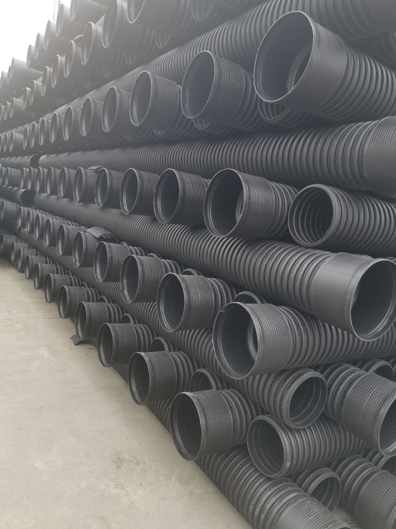 外觀:黑色。執(zhí)行 GB/T 19472.1-2004《埋地用聚乙烯(PE)結(jié)構(gòu)壁管道系統(tǒng)第一部分:聚乙烯雙壁波紋管管材》。彈性密封符合 HG/T 3091-2000 的要求。規(guī)格:內(nèi)徑:DN200mm,DN300mm,DN400mm,DN500mm,DN600mm,DN800mm,等規(guī)格。