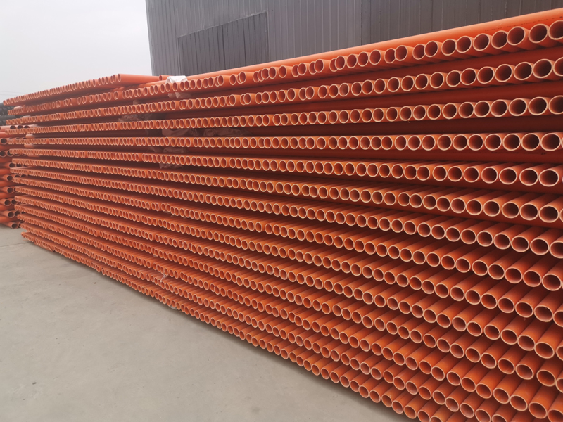 PVC-C樹(shù)脂為母料,加入抗沖劑,穩(wěn)定劑等輔料經(jīng)高速擠出而成的新型埋地式高壓電力電纜保護(hù)管。